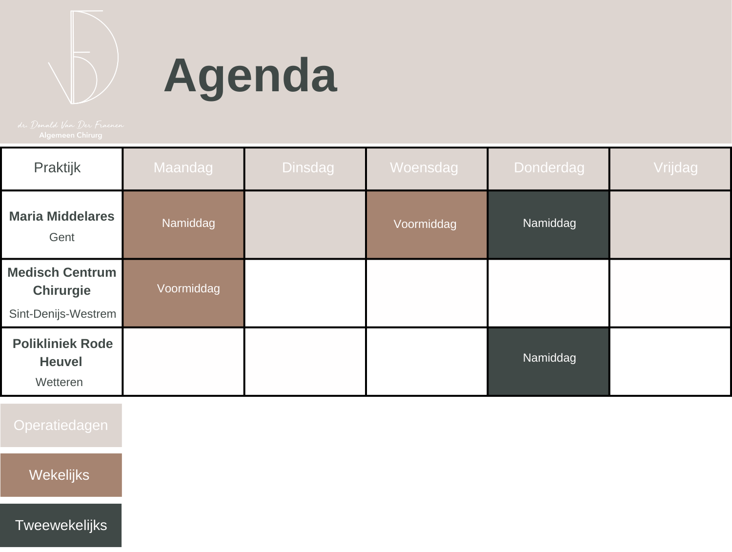 Voor het maken van een afspraak op eender welke locatie, neem je contact op met het secretariaat van de dienst Heelkunde van Maria Middelares.